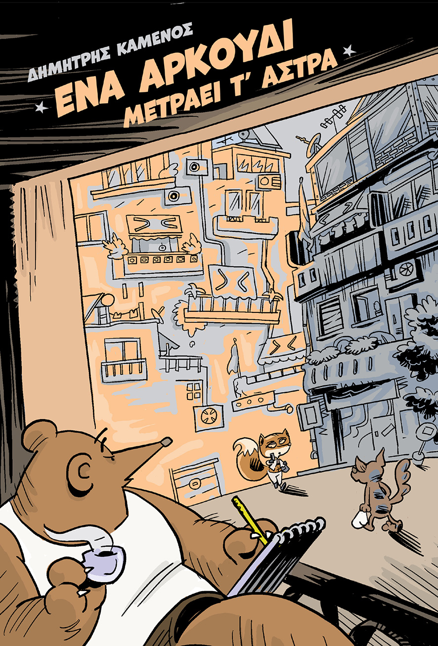 Το χρονικό μιας Ελληνικής συνοικίας όπου ζει μια γριά χελώνα, μια αλεπού ινφλουένσερ, ένα νευρικό τσακάλι, ένας συνωμοσιολόγος κροκόδειλος, ένας ελληνορθόδοξος νίντζα, ένας σιωπηλός ματάκιας, ένας Μεξικανός μετανάστης, ένα υστερόβουλο Α.Ι. και ένας -εχμ- πολύ παρατηρητικός αρκούδος.