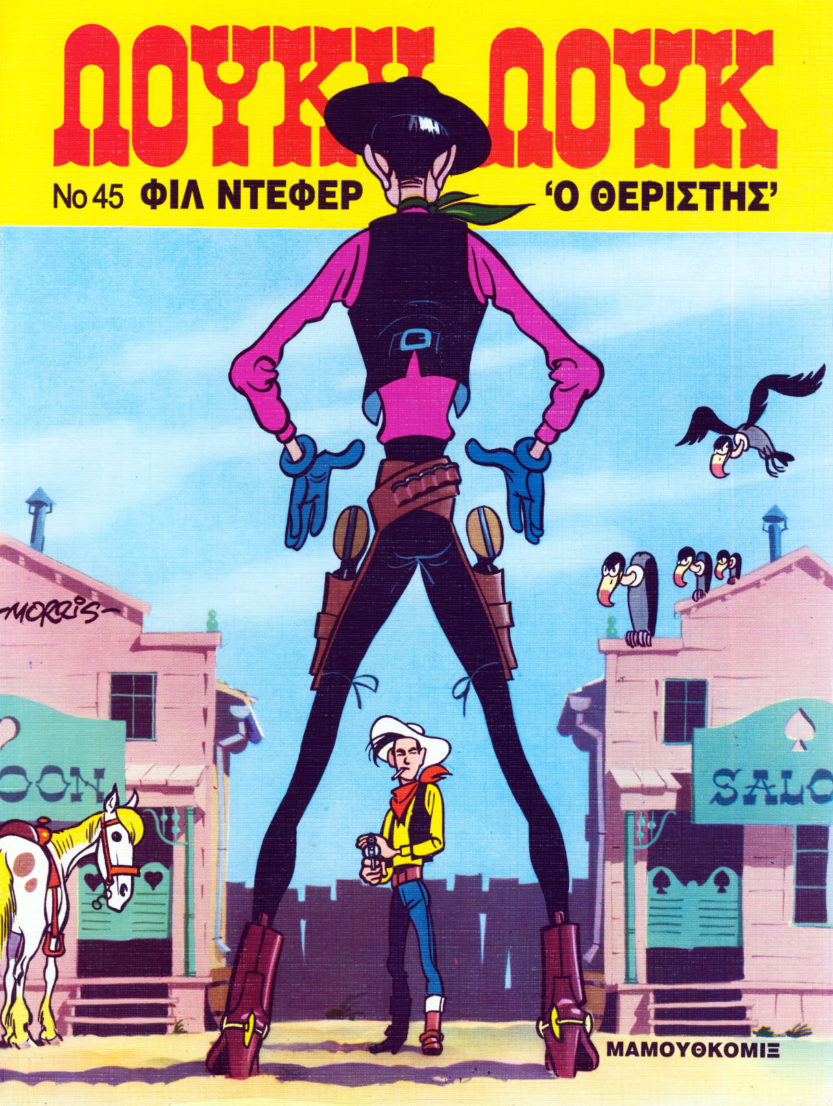 Η πολυτελής έκδοση με σκληρό εξώφυλλο."Morris, μια ιδιοφυία της ένατης τέχνης!"Ο πατέρας του ΛΟΥΚΥ Λ..
