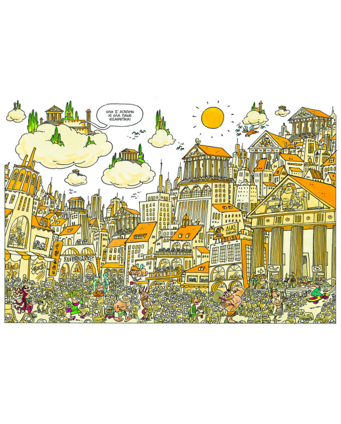 Λένε ότι ο κεραυνός δεν χτυπάει ποτέ δύο φορές στο ίδιο σημείο. Αυτό βέβαια δεν φάνηκε να ισχύει για το καλλιτεχνικό δίδυμο Τσεράμι-Τζίκε, το οποίο λίγο καιρό μετά την επιτυχία του Ολύμπου Α.Ε. επανήλθε δυναμικά με την συνέχεια, Όλυμπος Α.Ε. – Χοντρό Κυνήγι, βάζοντας το χέρι του Δία να εξακοντίσει τον κεραυνό του για ακόμη μία φορά εναντίον των μεγαλύτερων προβλημάτων της ανθρωπότητας. Γκάφες και παρεξηγήσεις γίνονται το πρόσφορο έδαφος στον Όλυμπο Α.Ε. πάνω στο οποίο το δωδεκάθεο προσπαθεί να εδραιώσει την παλιγγενεσία της λατρείας του. Δύο χρόνια αργότερα, το 2002, ο Τσεράμι επιστρέφει σε αυτό το ασυναγώνιστο καστ, για να φέρει τους θεούς αντιμέτωπους με ένα άλλο εξίσου σημαντικό, μα εκ διαμέτρου αντίθετο, πρόβλημα: το οικονομικό. Ακραίος καπιταλισμός, εκμετάλλευση, πληθωρισμός, η ιστορία διαθέτει όλα τα υλικά για μια αρχαία-νέα τραγωδία. Χάρη όμως στην οξεία κι αποστασιοποιημένη σάτιρα του Τσεράμι και το πληθωρικά υπερβολικό σχέδιο της Τζίκε ο αναγνώστης γλυτώνει το συνηθισμένο σοκ της άμεσης επαφής με την πραγματικότητα, ανακαλύπτοντας πως μάλλον τελικά υπάρχει χρυσή τομή μεταξύ Μποστ και Κακογιάννη. Είναι σίγουρα παρήγορο να βλέπει κανείς πως ούτε κι ο μεγάλος Δίας δεν καταφέρνει να ξεφύγει από τα γρανάζια του συστήματος. Θύμα των εκπτώσεων και των ατελείωτων ουρών του δημοσίου, καταστάσεις τις οποίες αμφότεροι Ιταλοί και Έλληνες γνωρίζουμε πολύ καλά, μας υπενθυμίζει το πόσο η κοινωνικοπολιτική, αλλά και η γεωγραφική, αυτή συγγένεια συντελεί στην σάτιρα του έργου. Ο Όλυμπος Α.Ε. – Χοντρό Κυνήγι υποδέχεται τον αναγνώστη με μία ποικιλία ομοιοτήτων, καλώντας τον να τις εντοπίσει, είτε με γυμνό μάτι είτε με το μικροσκόπιο, και να ταυτιστεί με την γενναιότητα, αλλά κυρίως με τη γελοιότητα, με την οποία αντιμετωπίζουμε τη δική μας διαχρονική καθημερινότητα. Εν τέλει, ο κεραυνός χτύπησε και δεύτερη φορά δίνοντας τη λογική συνέχεια μιας ιστορίας δύο ανήσυχων δημιουργών και παρατηρητικών πολιτών που δεν είχαν ακόμη πει την τελευταία τους λέξη .