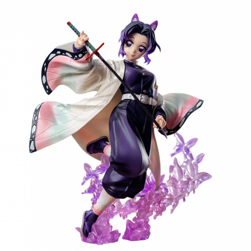 Η φιγούρα απεικονίζει τη Shinobu σε δυναμική πόζα μάχης, με το χαρακτηριστικό σπαθί της και εφέ που θυμίζουν πεταλούδες, αποδίδοντας άψογα την κομψότητα και τη φονική της χάρη.