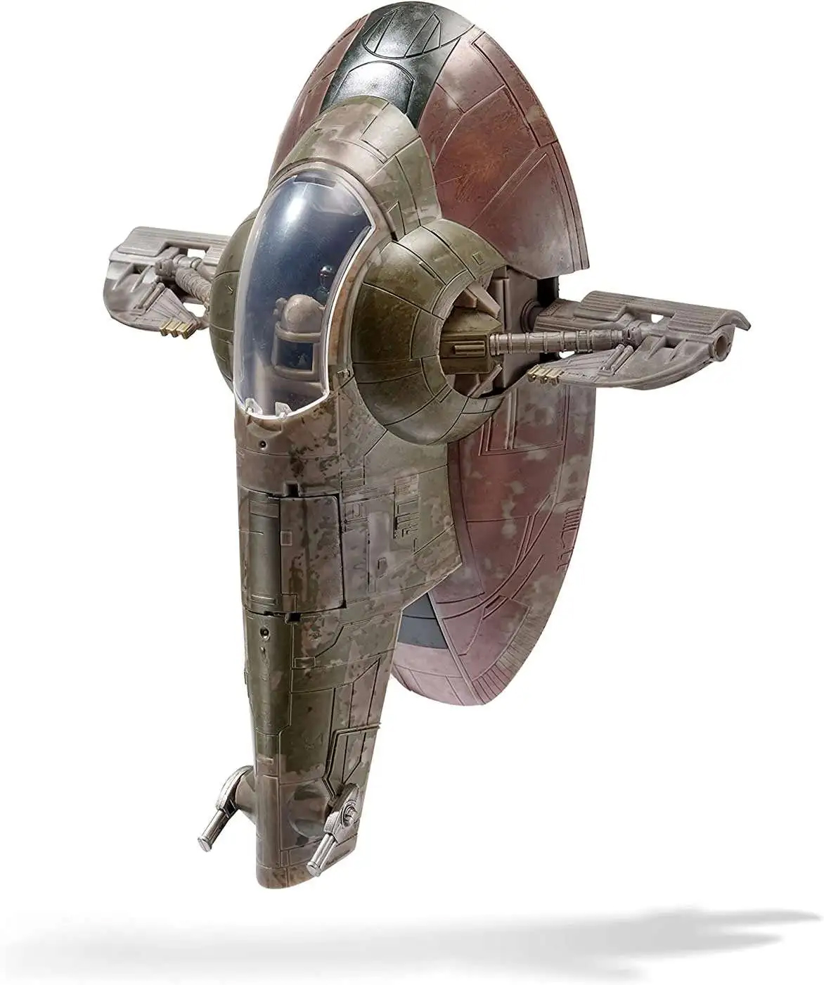 Πιστή αναπαράσταση, με περιστρεφόμενο πιλοτήριο και φτερά, κινούμενα πυροβόλα και ρεαλιστικά μηχανικά μέρη. Περιλαμβάνει δύο αρθρωτές μικροφιγούρες 2,5 εκ., του Boba Fett και του Fennec Shand.