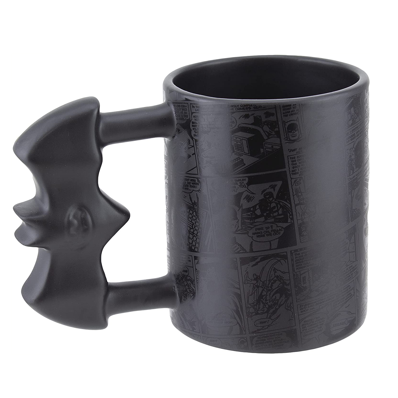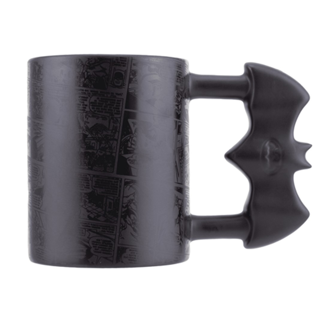 Η μαύρη ματ αυτή κούπα είναι διακοσμημένη γύρω γύρω με ένα εξαιρετικά λεπτομερές σχέδιο κόμικς. Το χαρακτηριστικό της είναι η λαβή σε σχήμα Μπάταρανγκ. Το Μπάταρανγκ είναι ένα όπλο ρίψης σε σχήμα νυχτερίδας και βασικό στοιχείο στο οπλοστάσιο του Batman από το 1939.