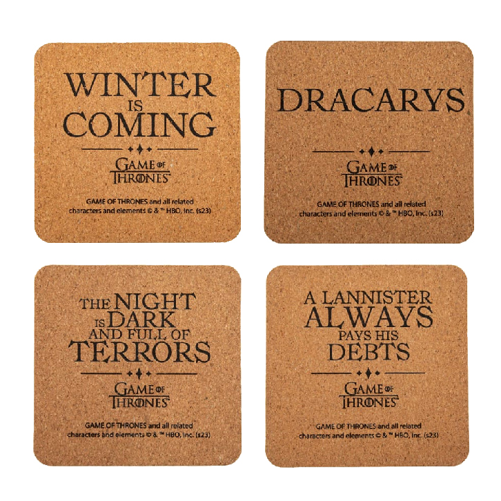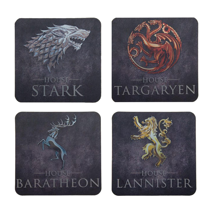 Ένα σετ από τέσσερα σουβέρ, το καθένα αντιπροσωπεύει έναν σημαντικό οίκο από τη σειρά Game of Thrones: