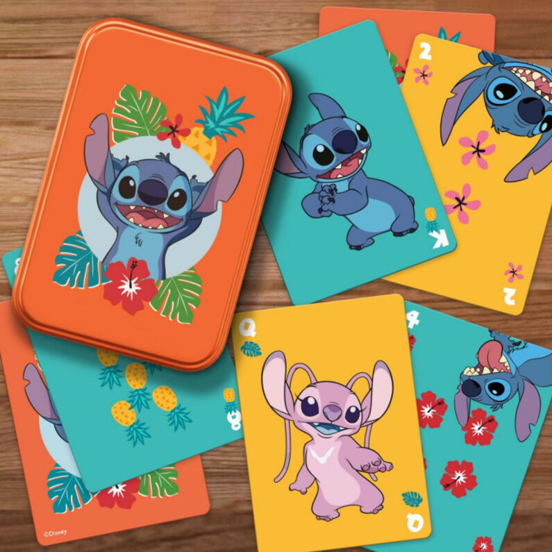 Μια τράπουλα από την κλασσική πλέον ταινία Λίλο & Στιτς, με 52 κάρτες και 2 κάρτες joker σε ένα μεταλλικό κουτί για να την αποθηκεύετε με ασφάλεια, αποτελεί ένα συλλεκτικό δώρο για τους λάτρες της ταινίας, της Disney και όχι μόνο!